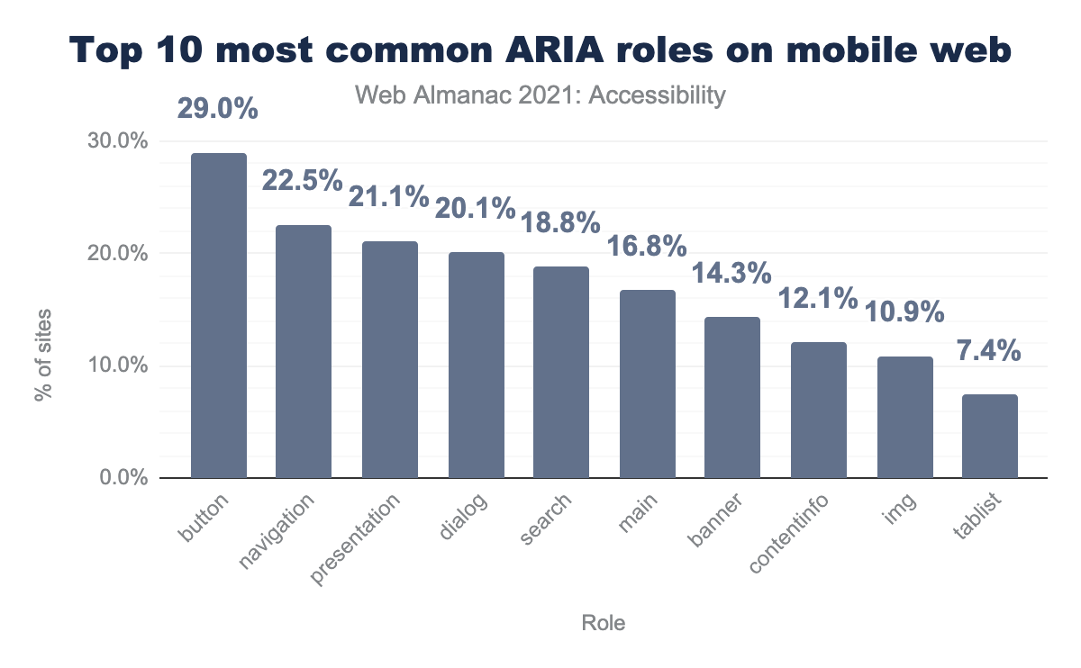 Disappointingly, 29.4% of mobile page loads fail this requirement, and contained a viewport that prevented zooming, this is a slight improvement over the 30.7% (source: 2020 Web Almanac Accessibility chapter).