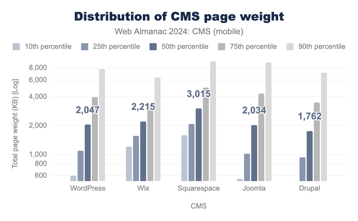 Challenges persist, however. As CMSs expand their capabilities and adopt new technologies, balancing added functionality with performance remains crucial. Issues such as page weight and JavaScript load continue to impact some platforms, especially on mobile, underscoring the importance of ongoing optimization and adherence to best practices.